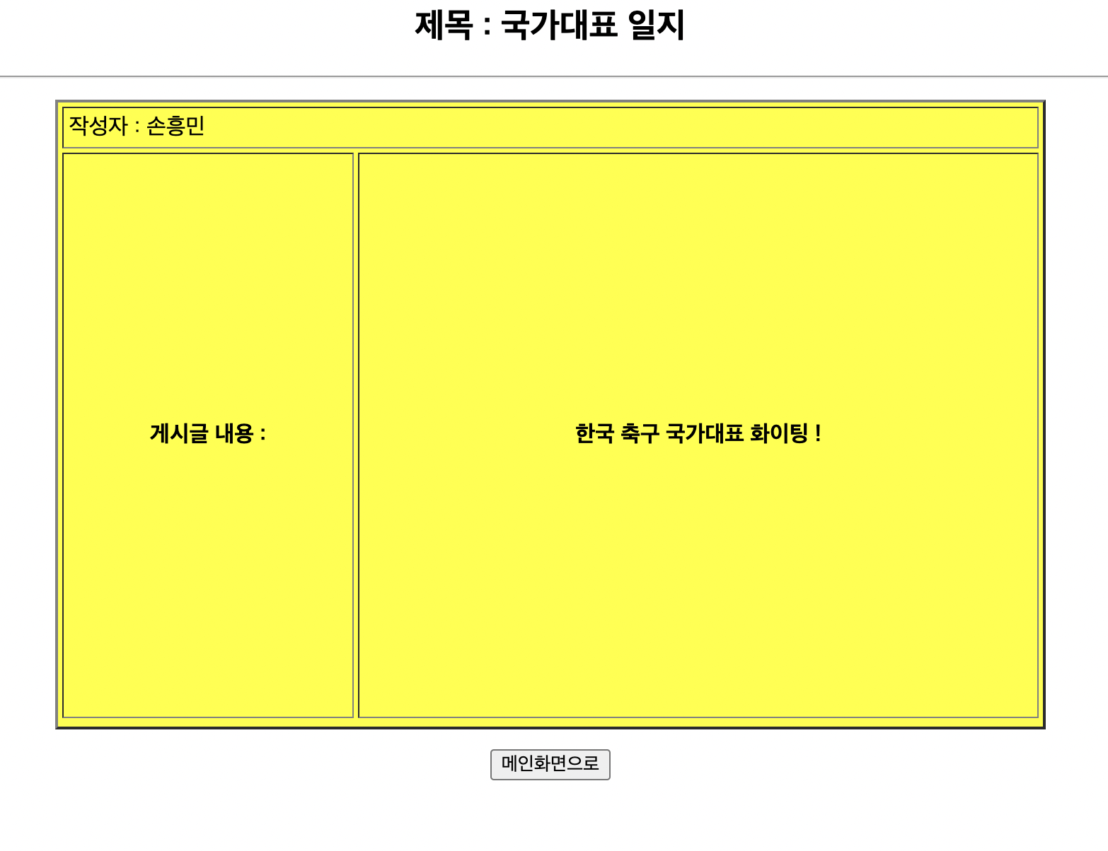 위의 이미지처럼 제목과 작성자 및 게시글의 내용을 확인할 수 있는 간단한 테이블로 이루어진 jsp 페이지가 나타나게 되며 메인화면으로 버튼을 클릭하였을 경우 메인 페이지인 noticeList.jsp로 넘어가게 된다.