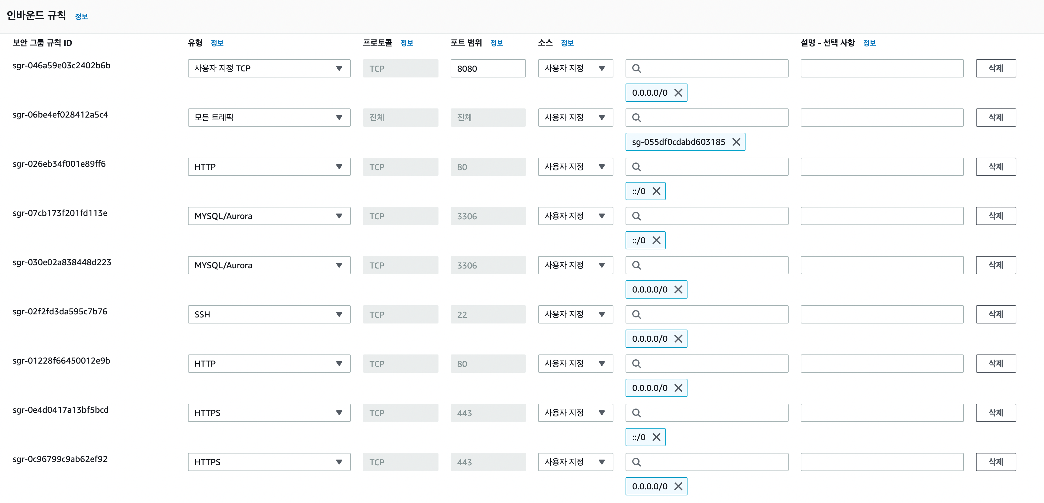 새로 만든 파라미터 그룹으로 변경해주면 설정이 완료됐고 이제 내 로컬에서 해당 RDS에 접근하기 위해 보안 그룹을 설정해줄 거다.