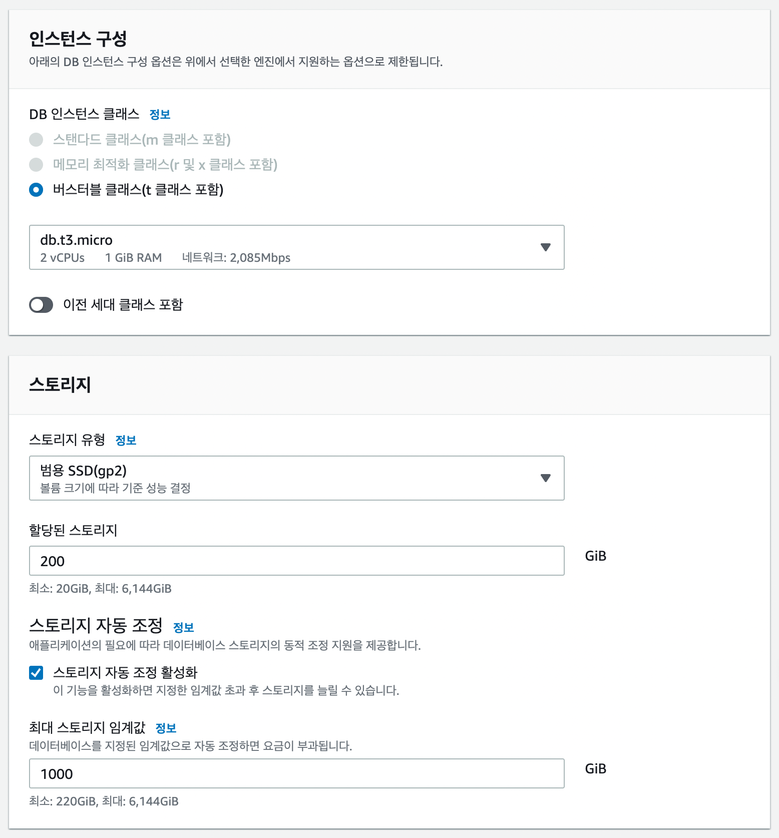 이 부분은 딱히 건드려줄 것이 없기 때문에 기본값 그대로 둔다, 프리티어의 경우 인스턴스 구성은 선택 불가하기도 하다.