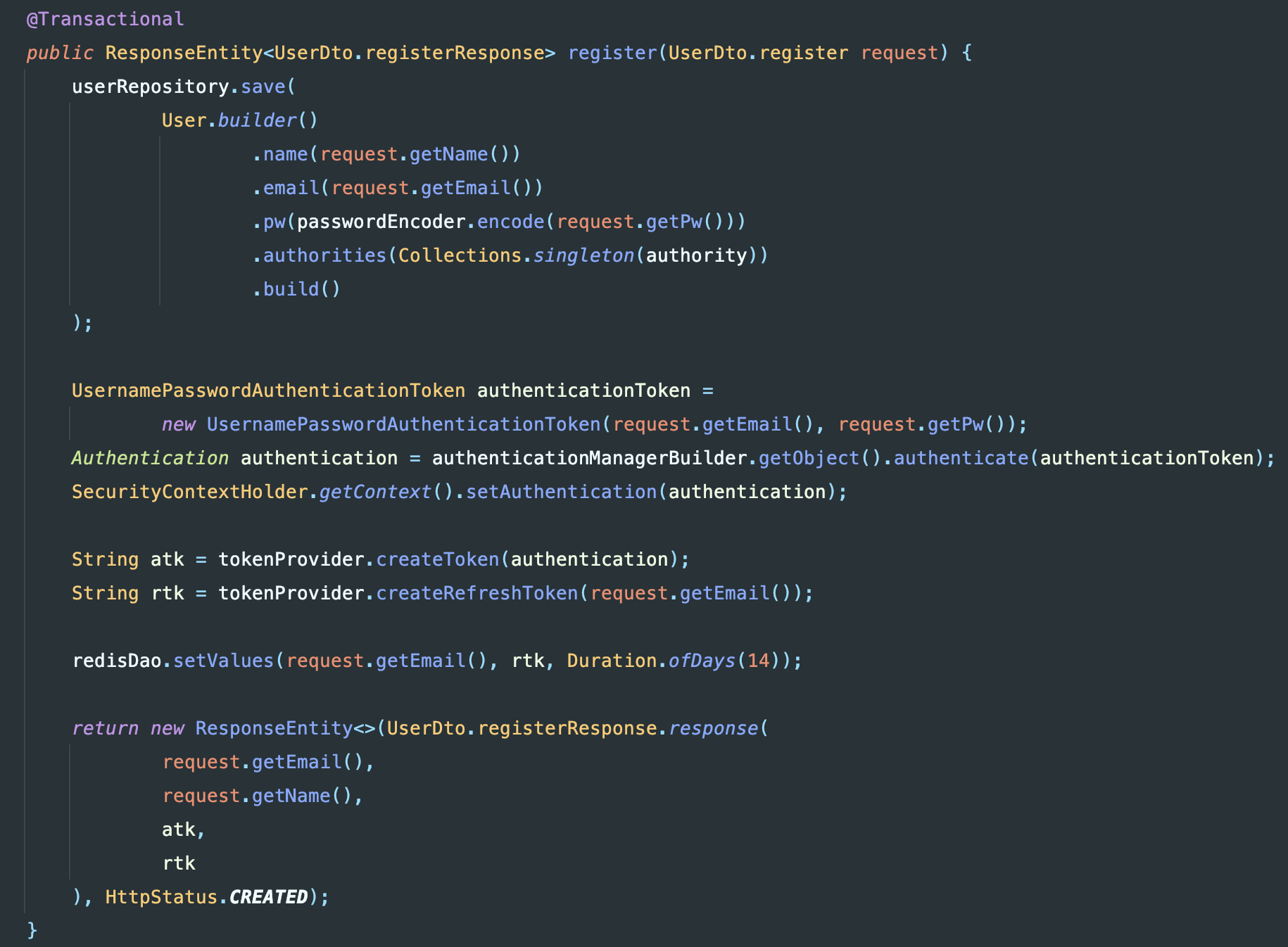 위에 미리 서술해둔 회원가입 로직을 토대로 짜인 코드이다.