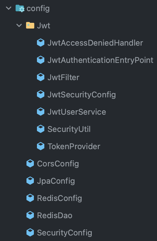 Jwt와 기타 Config는 위의 패키지 구조로 대체하며, 이 정도가 들어갔다 정도만 글에 작성하겠다,, 다만 서비스 로직에서 중요하게 여겨지는 부분은 다루도록 하겠다.