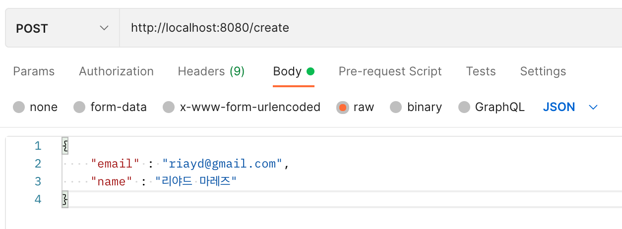 이후에 서버를 실행 후 포스트맨을 통하여 회원정보를 입력해서 데이터가 내 DB에 잘 저장되는지 확인해보자.